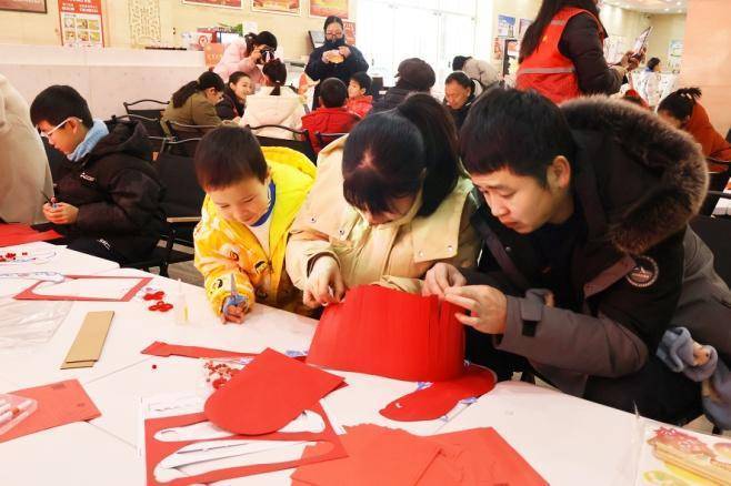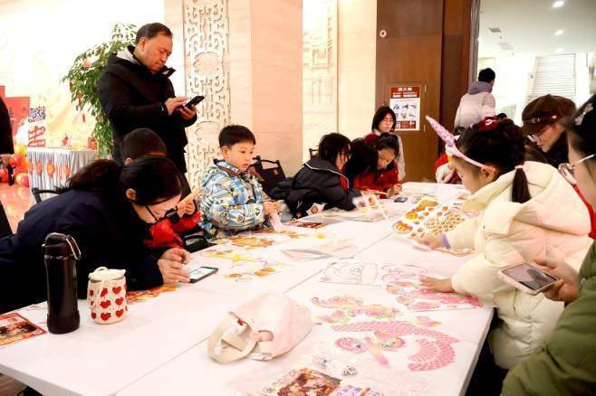 展览参观环节结束后,最受期待的非遗手作体验活动在二楼大厅拉开帷幕。四大特色非遗体验区同步开放,吸引着亲子家庭们踊跃参与。